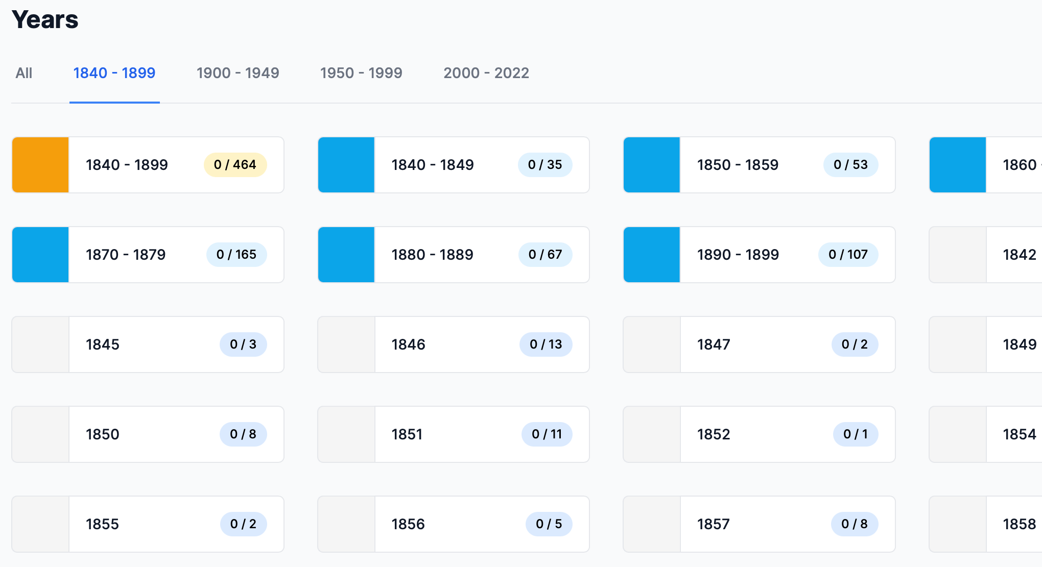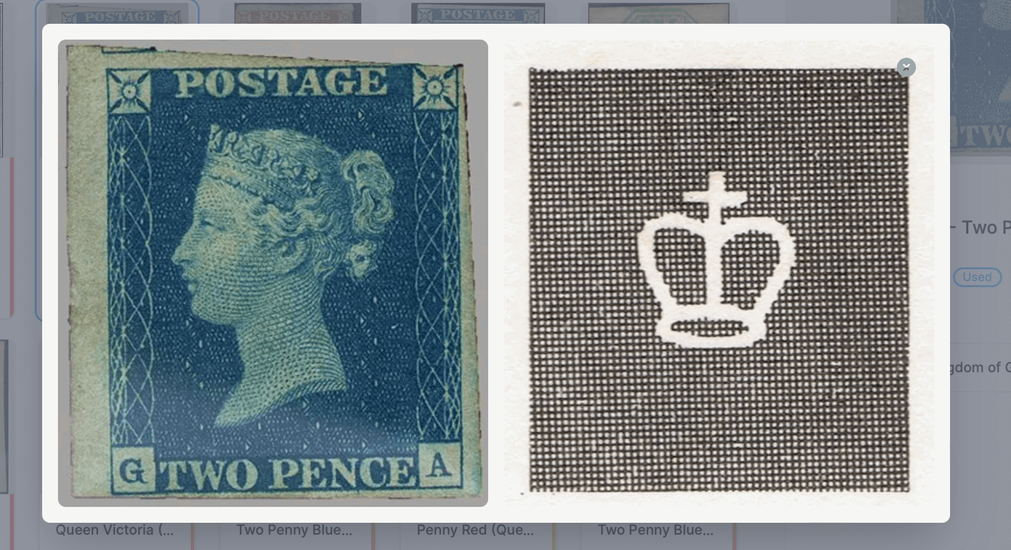 See all your stamps at a glance, filter by country, year, catalog, and more.